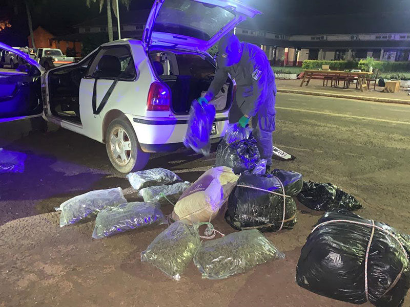 No tardaron en advertir que el hombre llevaba en el auto una gran cantidad de bultos embalados en bolsas de color negro que contaban con paquetes transparentes cargados de una aparente sustancia vegetal que emanaba un penetrante olor.