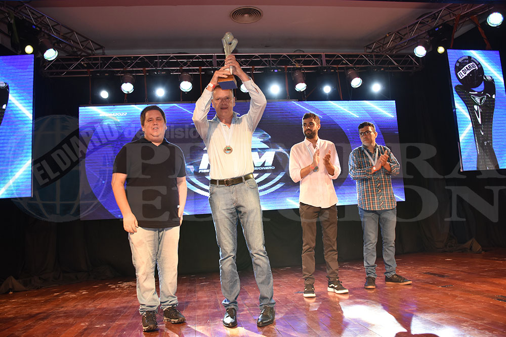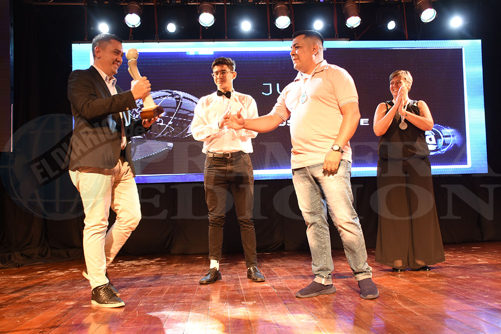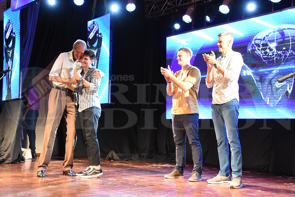 MANO FUERTE. Omar Kelm, papá de Esteban, recibió la estatuilla de manos de Pablo Miño, periodista de PRIMERA EDICIÓN.