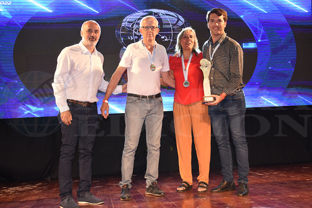 TIBURÓN. Lilian Brandt recibió la estatuilla de natación en nombre de Seba, su hijo. Entregó el periodista Ángel Miño.