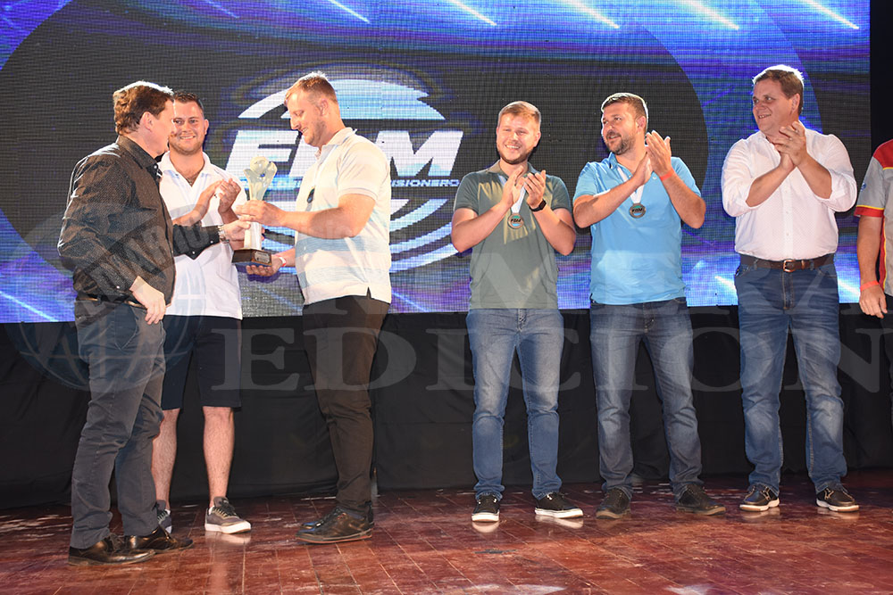 UNA MARAVILLA. Maximiliano Sartori (Enduro) ganó un viaje para dos personas a Puerto Iguazú, cortesía del Ministerio de Turismo. Entregó Arrúa, al frente de esa cartera.