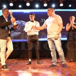 PUÑO EN ALTO. Lautaro Cuella ganó en boxeo. Entregó la estatuilla el periodista Carlos Báez, de PRIMERA EDICIÓN.