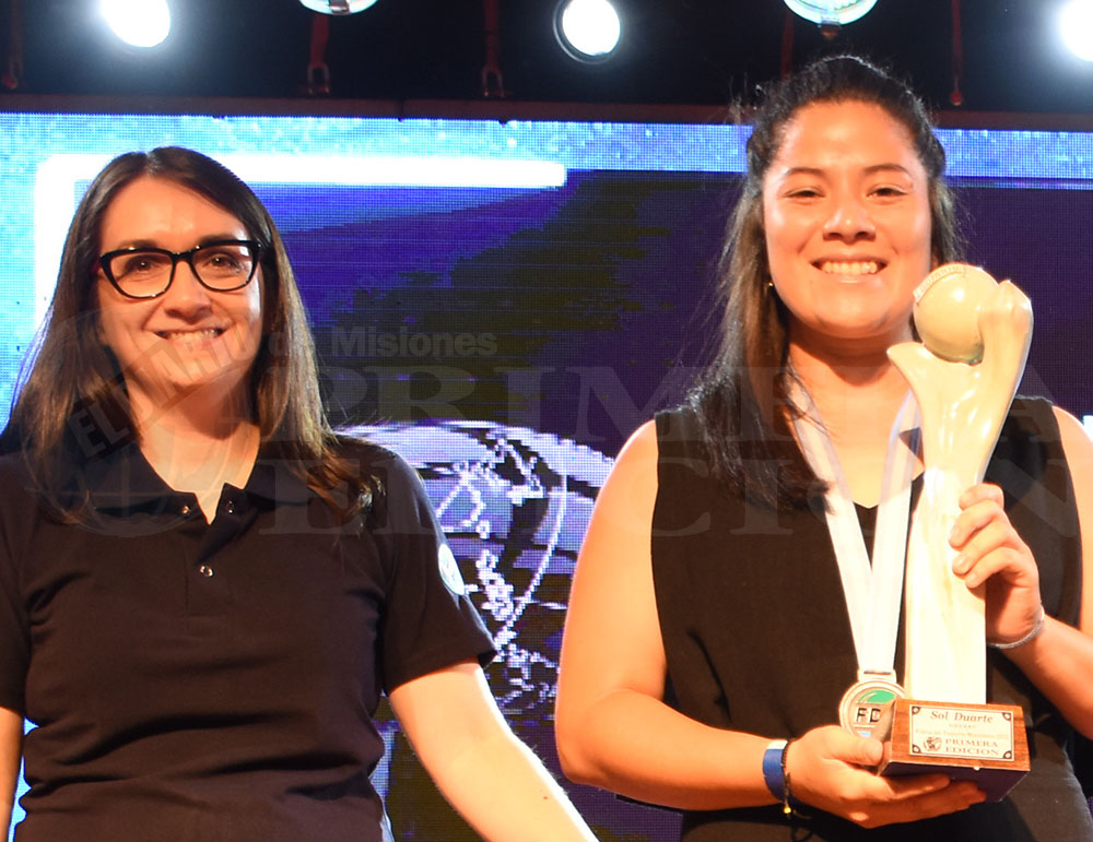A FUERZA DE GOLES. Sol Duarte ganó la estatuilla en hockey. Entregó Rocío Gómez, periodista de PRIMERA EDICIÓN.