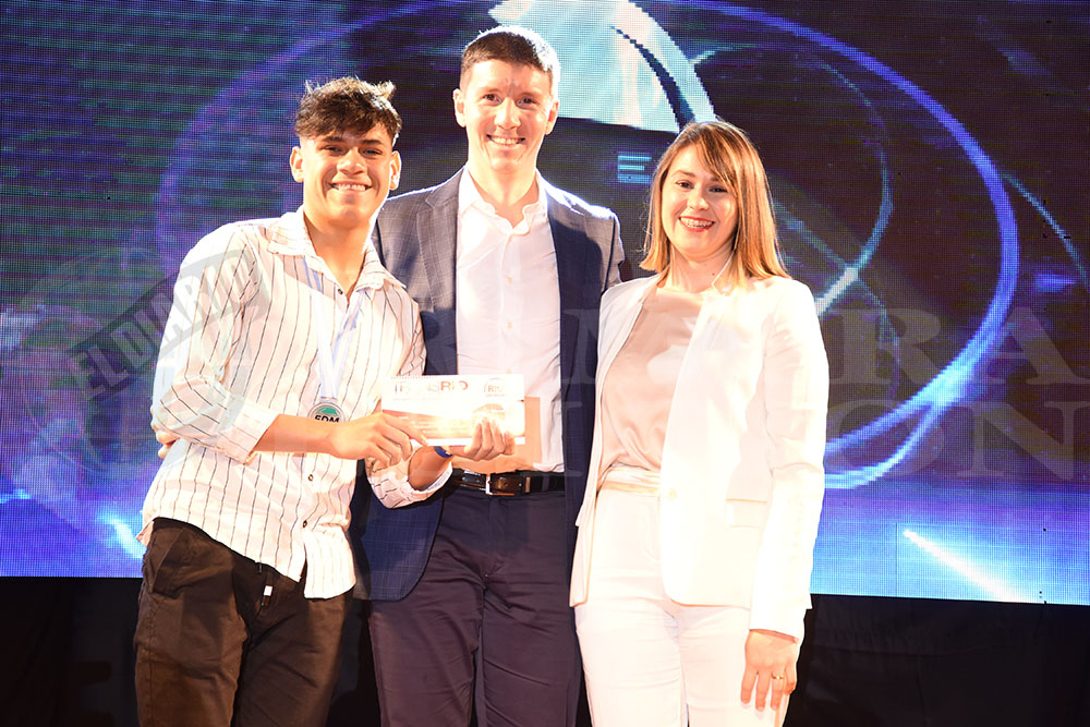 VERANO EN BRASIL. Máximo Yesa (Natación) se quedó con el traslado y las siete noches de alojamiento en Camboriú, cortesía de Río Uruguay y TransRío Viajes. Entregaron Fernanda Skrabiuk y Daniel Malica, de la firma.