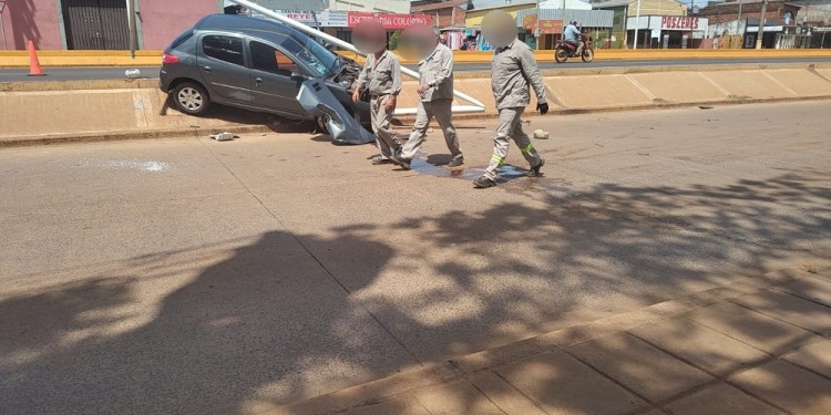 Este lunes en horas de la siesta y sobre la avenida Fernando “Tulo” Llamosas, personal de la Policía de Misiones constató el despiste de vehículo Peugeot 207, el cual era conducido por un hombre de 68 años, quien terminó estrellado contra una farola de iluminación de dicha arteria.