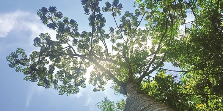 Pero volvamos al ambay, un árbol siempre verde, de porte mediano a pequeño que mientras crece, se van ahuecando sus ramas y dentro de ellas se meten a vivir una especie de hormigas bravas (aztecas) que defienden su nido de una manera feroz. Pareciera que entre el ambay y las aztecas ocurre una simbiosis mutualista que permite la convivencia donde todos ganan, cosa rara de ver, pero en este caso muy natural.
