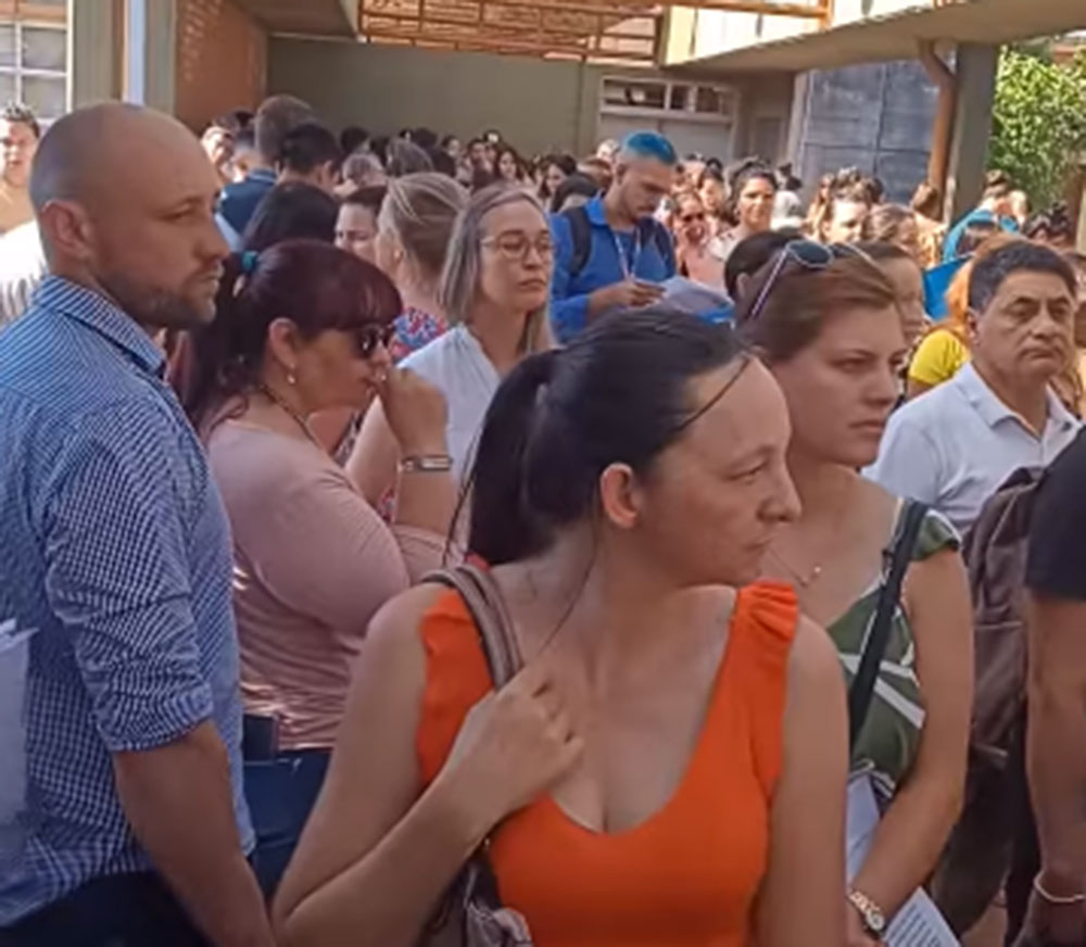 Una docente compartió con PRIMERA EDICIÓN un video de lo que está sucediendo este miércoles en la Junta de Clasificación y Disciplina del Consejo General de Educación (CGE): aglutinamiento de gente y una fila que sale del edificio y da vuelta la esquina. En las redes otros educadores también compartieron imágenes similares.