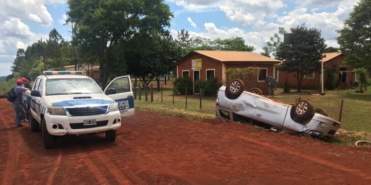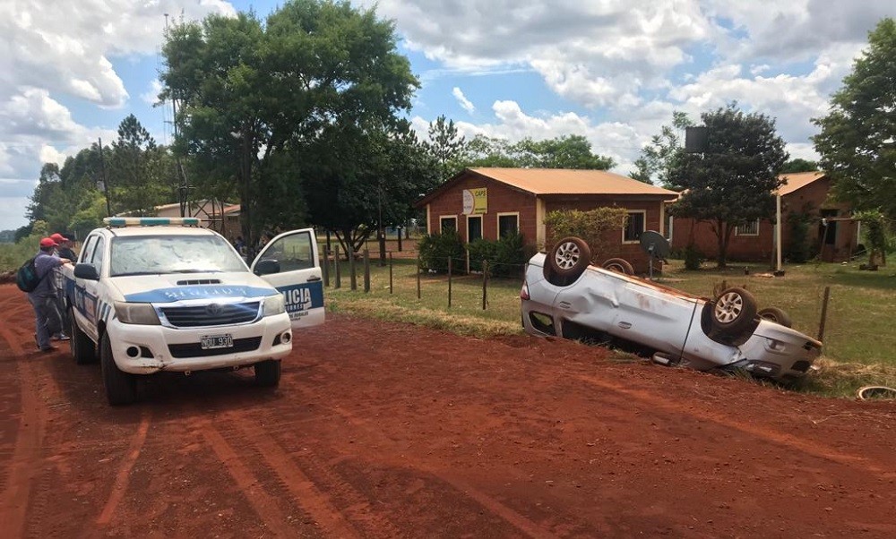 La particularidad es que el automóvil de color gris se encontraba volcado, con las ruedas hacia arriba y con su frente orientado en el sentido Tres Capones-Azara.