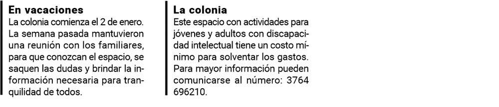 Para esta propuesta veraniega y adaptada, precisaron que realizarán actividades como teatro, expresión corporal, natación, según el interés de las personas. “La idea es que se diviertan y sean felices en la colonia”, explicó Rosa Billerberk.