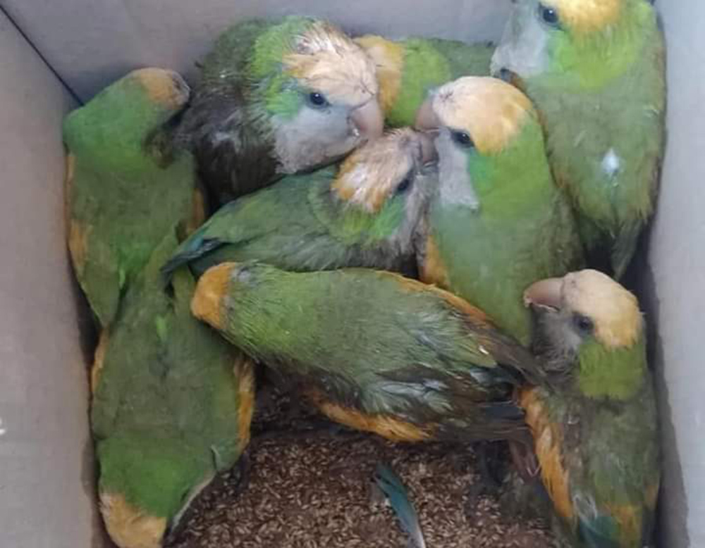 Los ejemplares se encontraban hacinados, malnutridos y con pobre condición corporal. Además su plumaje fue decolorado con productos químicos para hacerlos pasar por otra especie y conseguir mayor valor de venta.