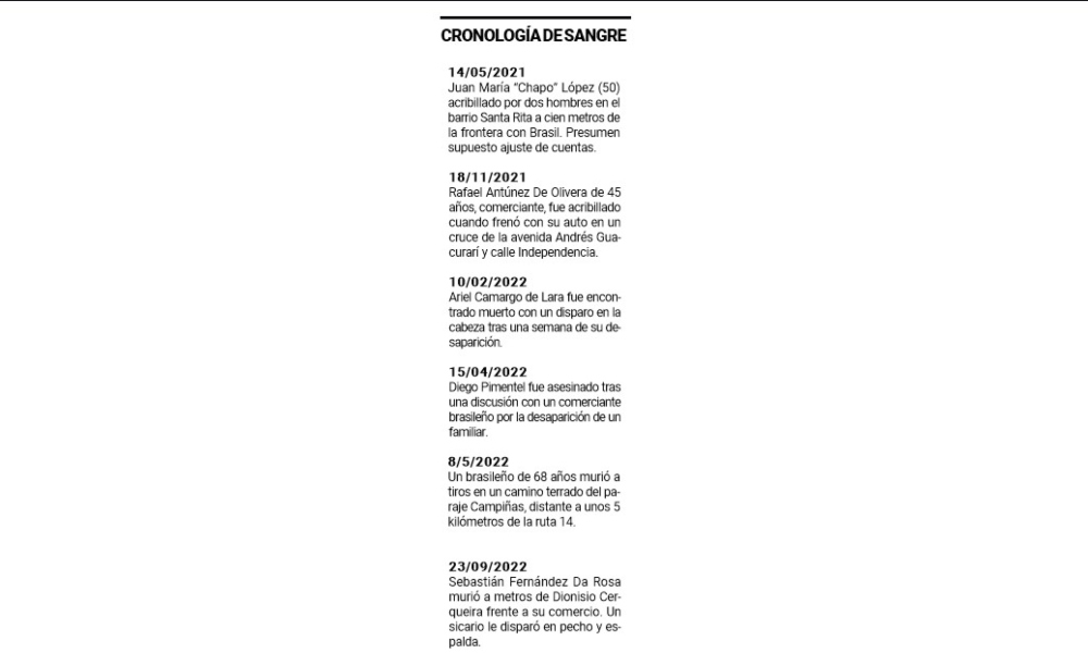 El crimen de De Olivera es el quinto registrado en este año en Bernardo de Irigoyen con idénticas características, asesinos motorizados y presuntamente contratados por mafias ligadas al contrabando.
