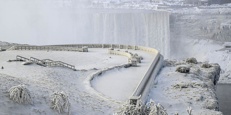 La atracción turística que limita los dos países del norte de América se vio afectada por la fuerte ola de frío rodeándose de nieve y hielo. El lugar que recibe miles de turistas al año se congeló parcialmente debido a las temperaturas extremas.
