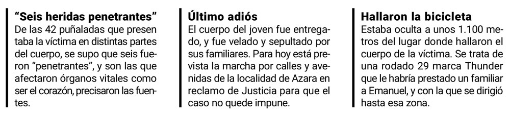 La autopsia al joven Emanuel Portillo (20) reveló que fue asesinado de 42 puñaladas, en tanto que aún no se pudo establecer si hubo abuso sexual, por lo que se hicieron análisis forenses cuyos resultados estarán en breve, señalaron fuentes del caso.