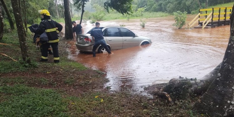 Efectivos de la comisaría Segunda de San Vicente debieron asistir y rescatar a un hombre de 52 años que había quedado atrapado dentro de su vehículo, como consecuencia del desborde del arroyo que atraviesa el Parque Héctor Carballo de esa ciudad, en la parte posterior del barrio 200 Viviendas.