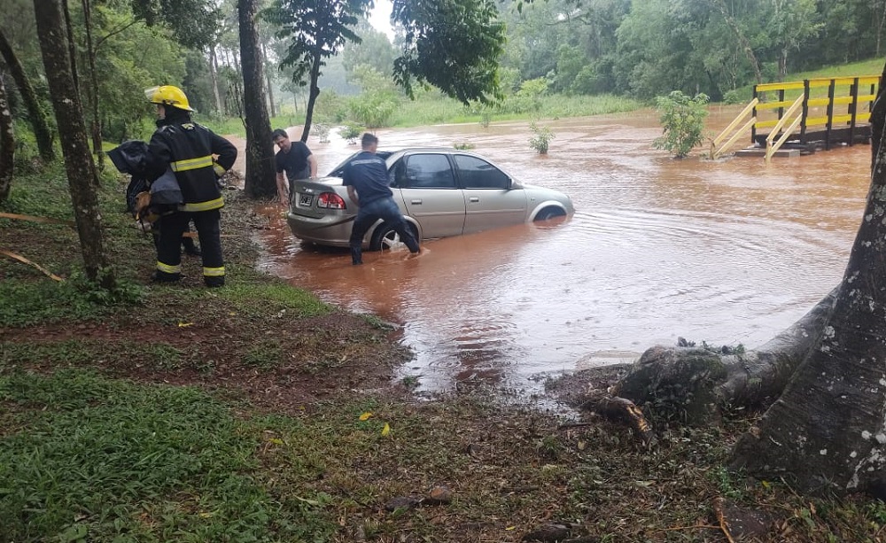 Al parecer, el sujeto es oriundo de Oberá y había quedado a dormir dentro del vehículo. Al despertarse, fue sorprendido por la creciente y desborde del arroyo, que dejó el auto sumergido en gran parte.