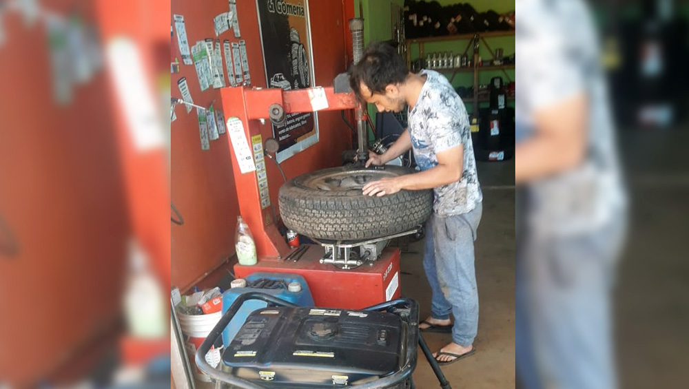 José Elías Dos Santos instaló hace un año una gomería sobre la ruta nacional 14, tras regresar de Buenos Aires. Puso equipos para realizar alineación y balanceo de los automóviles pero, por la baja tensión, aseguró que no puede trabajar normalmente.