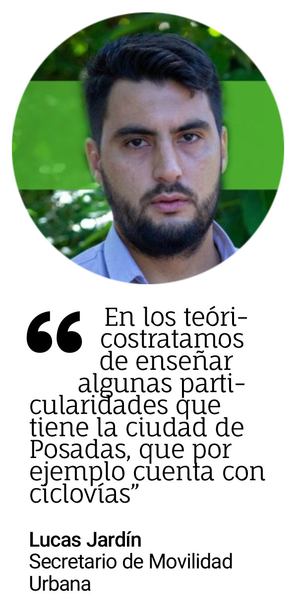 “En los teóricos tratamos de enseñar algunas particularidades que tiene la ciudad, porque justamente evaluamos a gente que vive en Posadas. Debe identificar cartelería específica y reconocer ciclovías. También abordamos una introducción al funcionamiento de monopatines eléctricos, entre otros puntos”, detalló el funcionario.