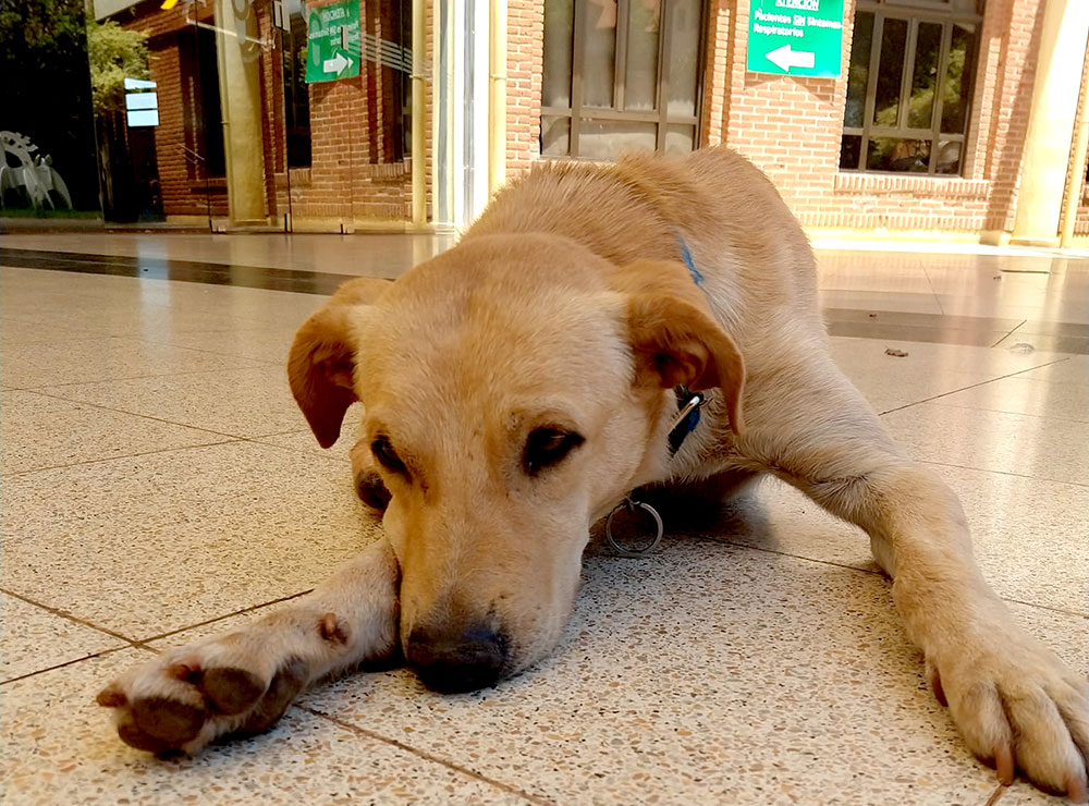 Gisela Aranda es médica y vive en Posadas. El sábado publicó en su cuenta de Facebook la foto del can comunicando que los guardias del lugar lo vieron llegar el jueves, corriendo tras un automóvil gris, en el que aparentemente estaba siendo trasladado su dueño para ser internado en el nosocomio. Horas después, se supo que esa persona lamentablemente falleció, pero sus familiares decidieron dejar allí a su mascota, desprovista de comida y atención.
