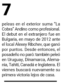 En cuanto al futuro, una de las metas de “La Cobra” será ese primer triunfo en casa o, al menos, realizar un buen papel, siempre con la mirada puesta en pelear por un título nacional. “Estamos activos y en el ranking de la FAB. Si esta pelea sale bien, creo que nos van a estar llamando para pelear por el título argentino. Y si no, también es probable. No perdemos ese sueño de pelear por la corona nacional”, sintetizó Andino.