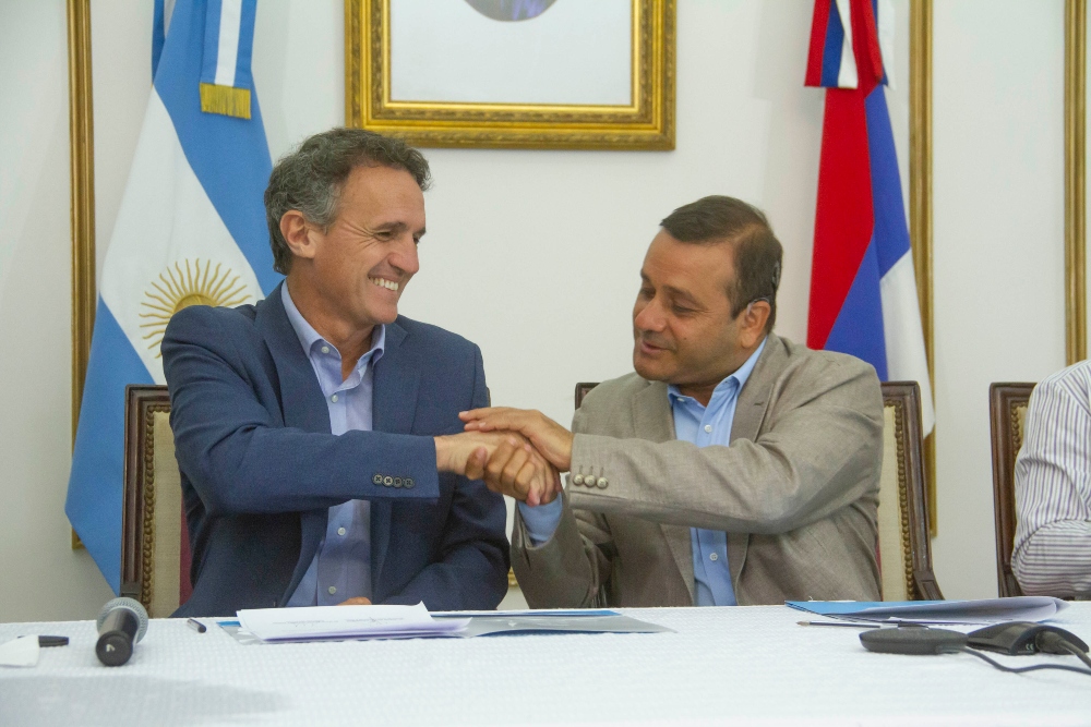 Durante el acto, Herrera Ahuad y el Ministro nacional firmaron el acta para financiar tres nuevos puentes sobre los arroyos Yabotí, Santa Rita y Chancay en la ruta provincial 2, del departamento de 25 de Mayo y San Pedro.