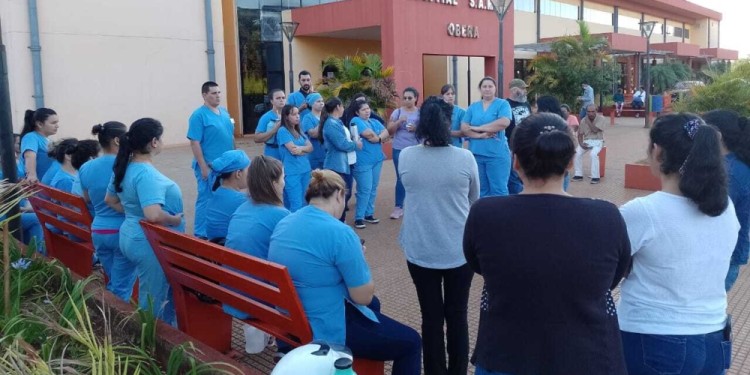 Unos 40 trabajadores de limpieza del Hospital SAMIC de Oberá están de paro este miércoles ante la falta de respuestas por su reclamo salarial y en rechazo al sueldo de $64.000 pesos que, aseguran, están percibiendo actualmente.