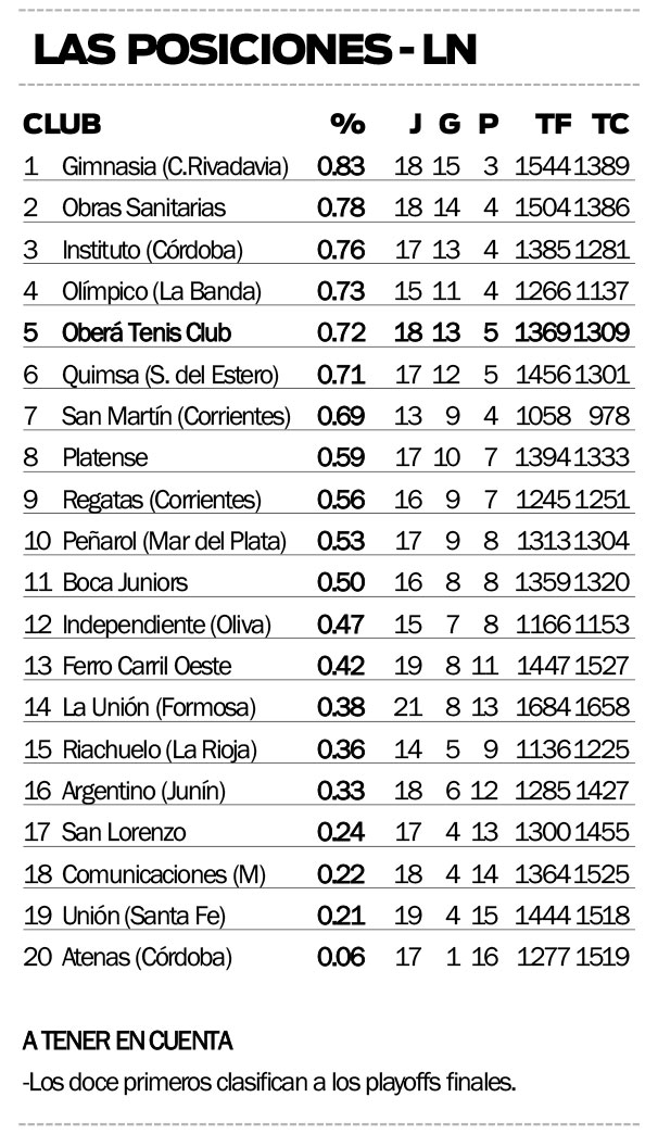 Tras una larga racha sin conocer la derrota, finalmente el Oberá Tenis Club cosechó su quinta derrota en la Liga Nacional de básquetbol. Pero eso ya es historia: tras perder ante San Martín en Corrientes, el Celeste volverá a salir hoy a la cancha en la provincia vecina, esta vez para visitar a Regatas en el mítico estadio José Jorge Contte.