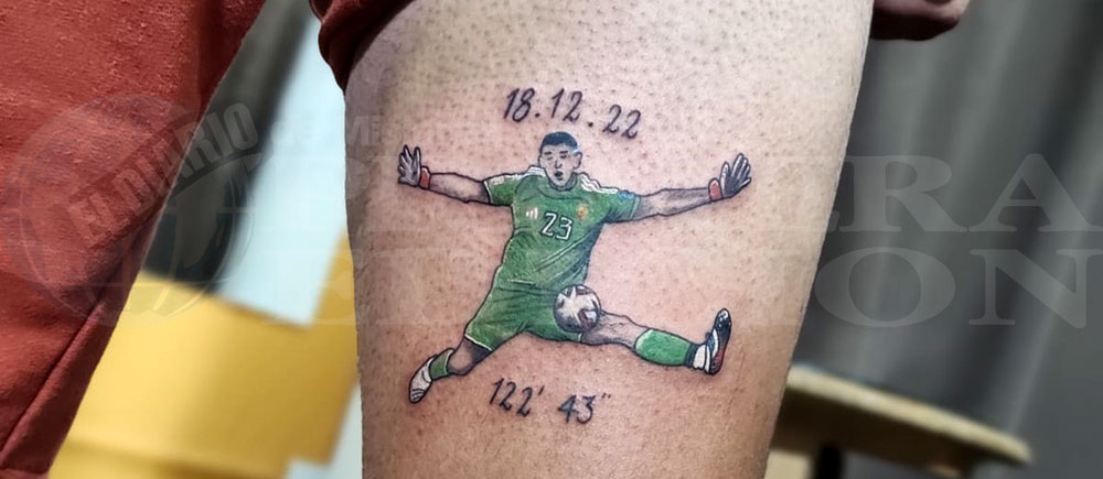 Después encontró tatuador, se puso en contacto, le mandó la imagen, arreglaron los detalles y el momento eterno del “Dibu” tapándole el gol a Kolo Muani está en su piel.
