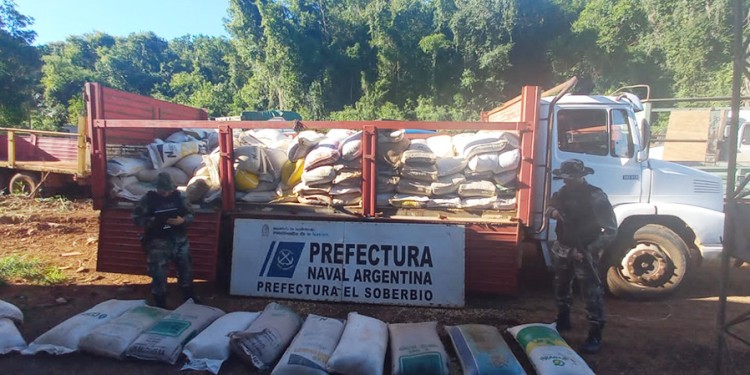 Efectivos de la Prefectura Naval Argentina desarticularon una maniobra de contrabando e incautaron un cargamento de 8.800 kilos de soja, que iba a ser exportado ilegalmente desde la costa misionera de El Soberbio hacia Brasil.