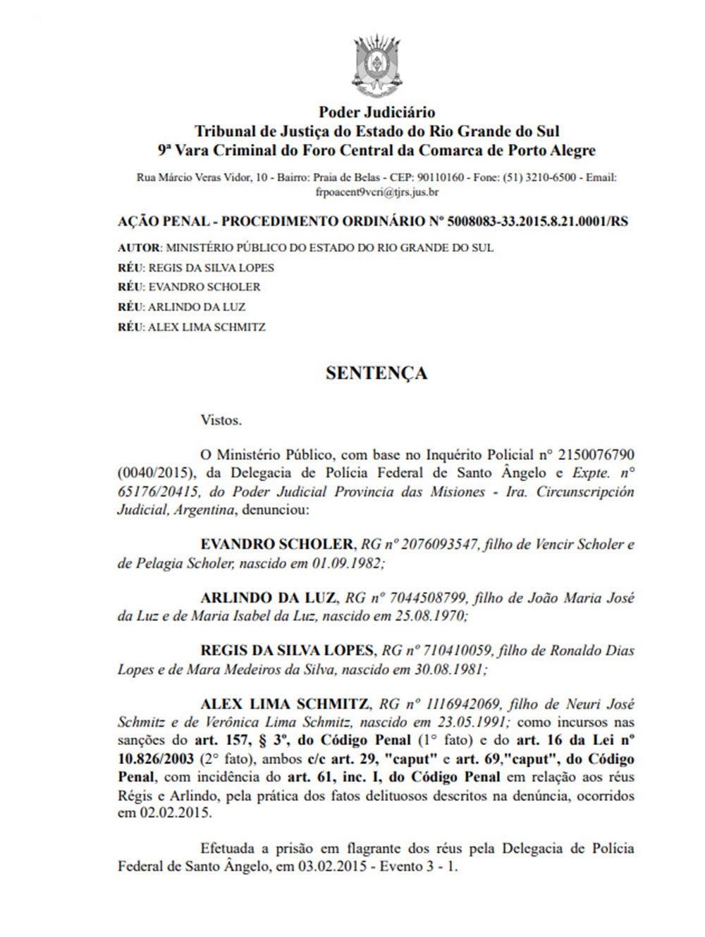 La sentencia recayó sobre los brasileros Evandro Scholer (40), Regis Da Silva Lopes (41) y Alex Lima Schmitz (31). También sobre Arlindo Da Luz (52), aunque este último no llegó a recibir condena, ya que murió en agosto de 2022, es decir, dos meses antes de la resolución firmada el miércoles 5 de octubre del año pasado por la jueza Eda Salete Zanatta de Miranda, de la 9ª Vara Criminal del Tribunal de Justicia de Rio Grande Do Sul.