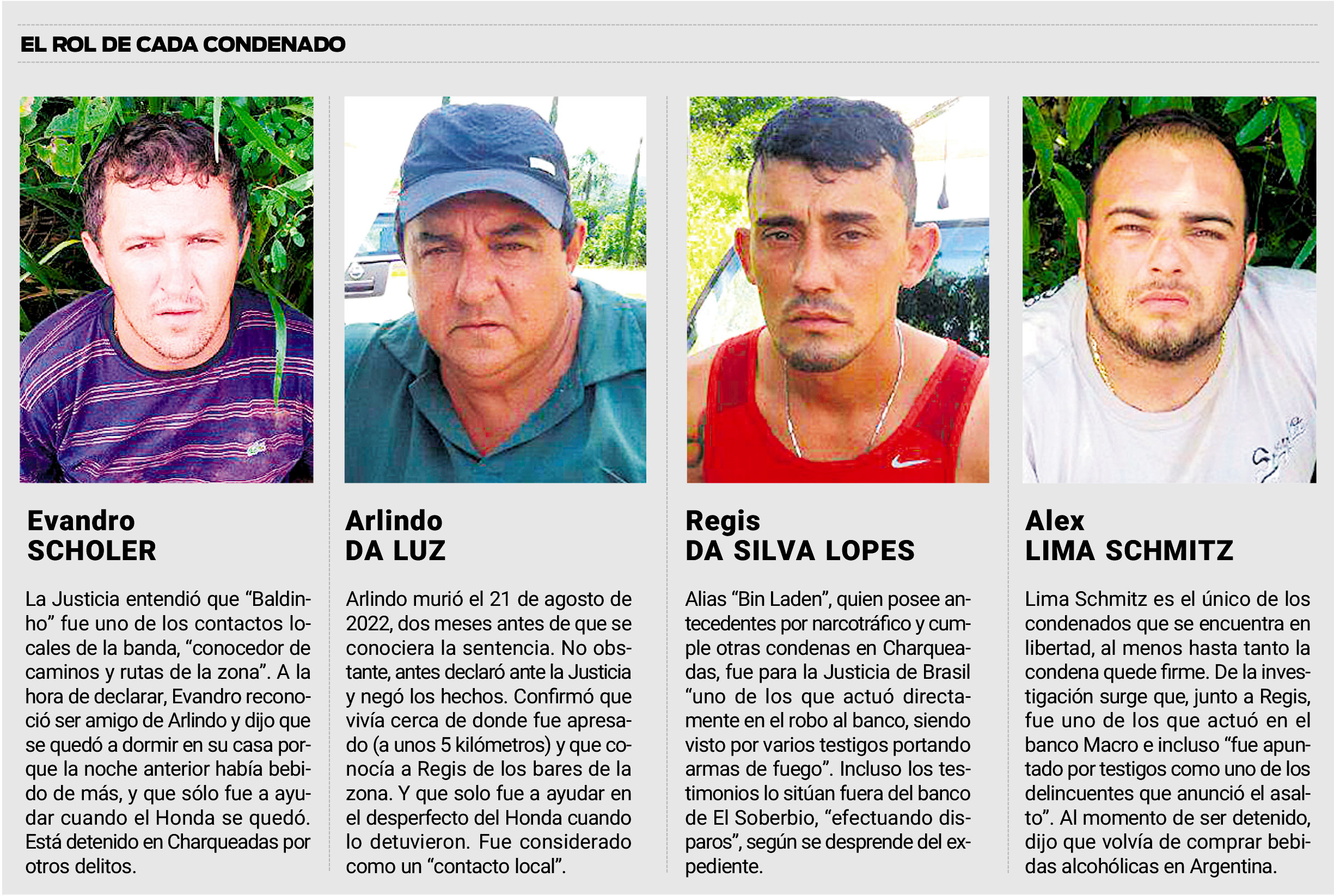 Ese mismo uniformado fue uno de los encargados de apresar a Scholer, Da Luz, Da Silva Lopes y Lima Schmitz. Su relato no tiene desperdicio y habla, además, de la violencia con la que actuó el grupo.