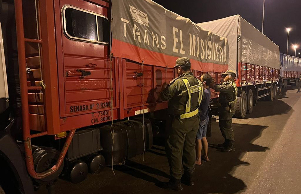El primero de ellos tuvo lugar en horas de la noche de este sábado 21, sobre la ruta nacional 14. Allí, los agentes del Escuadrón 7 Paso de los Libres “Cabo Misael Pereyra” procedieron a controlar los documentos de dos camiones provenientes de la localidad cordobesa de Oncativo, y que tenían como destino Colonia Alicia, en Misiones.