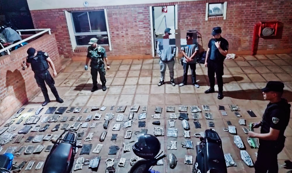 Allí, una patrulla de la comisaría local junto a Gendarmería realizaban operativos preventivos conjuntos. Les llamó la atención que un vehículo estuviera a esa hora en esa zona, por lo que lo interceptaron y observaron tres grandes bolsos en la parte trasera de la Peugeot Partner, los cuales al ser revisados contenían 140 placas de bronce que fueron quitadas de las tumbas. Por lo que ambos sospechosos, ambos oriundos de Eldorado, fueron detenidos y puestos a disposición de la Justicia. Los damnificados deben radicar la denuncia.