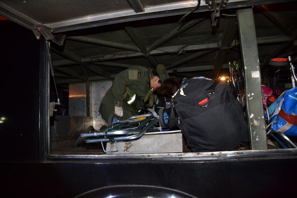 El control se llevó a cabo en horas de la madrugada del 23 de enero, cuando los uniformados inspeccionaron el interior de un colectivo y descubrieron en la parte trasera del piso superior un bolso de mano que se encontraba sin nombre identificatorio aparentemente abandonado.