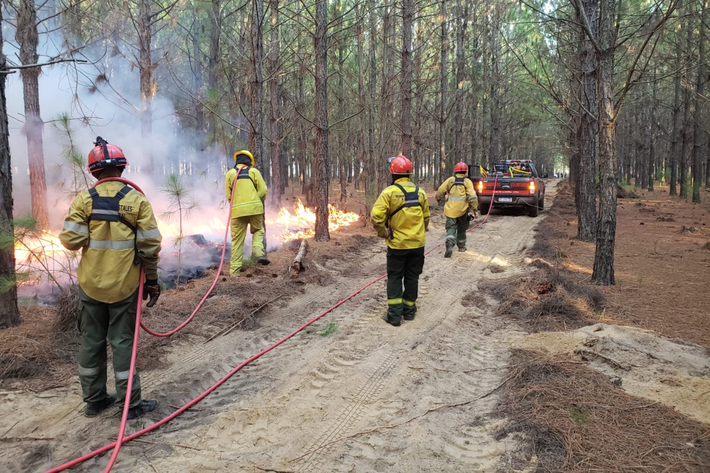 El fuego se desató el lunes alcanzando una plantación de pinos y eucaliptos a la vera de la ruta 12, requiriendo la intervención de Brigada de Incendios Forestales, con apoyo de la Policía de Corrientes y Gendarmería Nacional. También intervienen dos aviones hidrantes, 16 camionetas autobombas y alrededor de 80 operarios. Además, participan los cuarteles de Bomberos Voluntarios de Villa Olivari, Paso de la Patria, Virasoro, Ituzaingó, Loreto, Tatacuá, Mercedes, Itá Ibaté, y ahora se sumó el de Berón de Astrada.