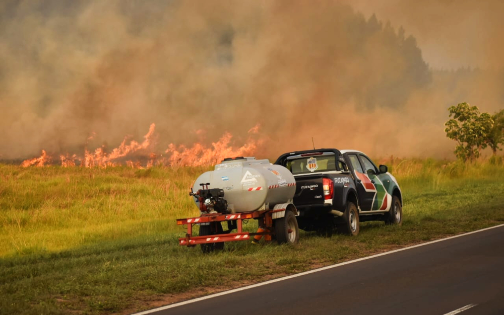 Guillermo Igarzábal, jefe de Bomberos de Ituzaingó brindó detalles de cómo está la situación hasta el momento en la zona. En pleno operativo, el bombero dijo que “el humo está perjudicando la visibilidad de la ruta, que está controlada por Gendarmería”.
