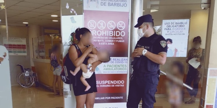 Al llegar a dicha parada de colectivos se encontraron a una madre desesperada con su bebé en brazos ahogándose al no poder respirar. “Fue algo que había que decidir en el momento, hay otras cuestiones donde primero hay que consultar qué pasó, si es un nene con un tipo de problemática de salud, pero en ese momento lo que hicimos fue evacuar a la madre con su bebé hasta el Hospital Madariaga”