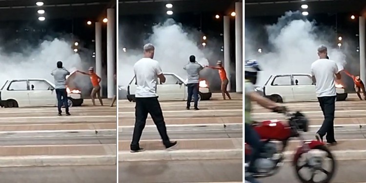 Anoche un automóvil se incendió en pleno puente Posadas-Encarnación, producto de las malas condiciones técnicas del rodado, lo que hizo que el motor prendiera fuego.