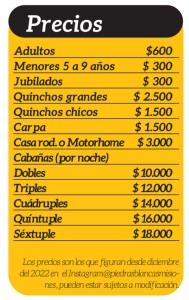 Para más info se puede ingresar al Facebook Agrocamping Piedras Blancas, al Instagram @piedrasblancasmisiones o bien comunicarse con el 3755 68-3083 / 3764393321, la respuesta es rápida y muy amable.