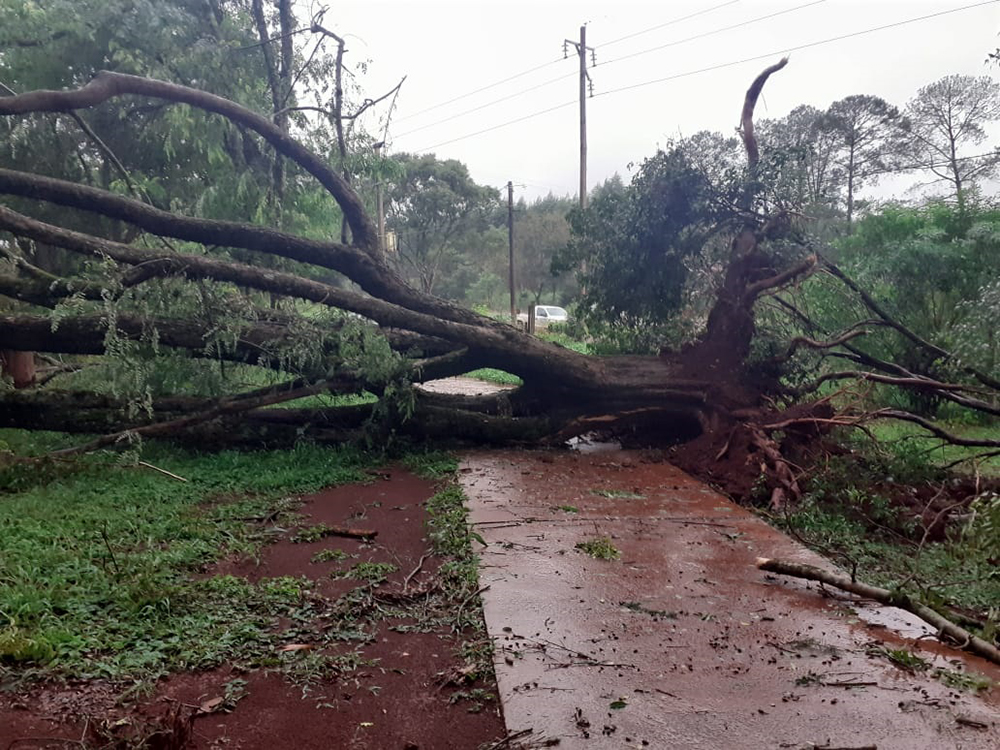 La breve tormenta que azotó a gran parte del territorio misionero este domingo, causó en Colonia Victoria que varios árboles cayeran sobre las líneas eléctricas, afectando el servicio.