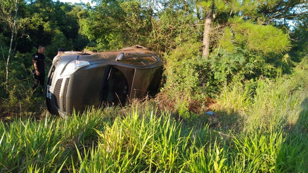 Un automóvil Chevrolet Agile despistó esta mañana sobre el kilómetro 837 de la ruta nacional 14 en Cerro Azul.