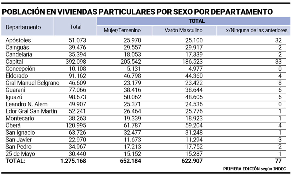 Con este resultado, Misiones tiene 29.277 mujeres más que hombres.