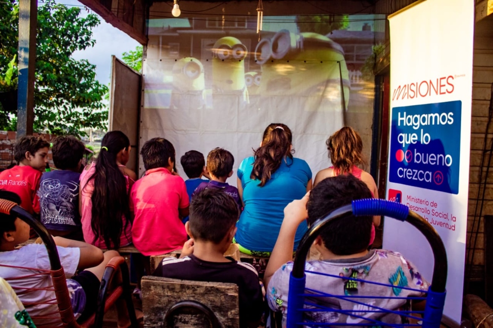 El Cine-Móvil es una actividad que surgió a través de la importancia de brindar un espacio recreativo para las infancias y que se convirtió, durante los recorridos barriales, en un espacio para interactuar con los vecinos por las diferentes problemáticas que se presentaban en los barrios.