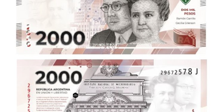El nuevo billete, que fue discutido y aprobado en la reunión de directorio de la entidad monetaria, conmemora el desarrollo de la ciencia y de la medicina en la Argentina. Llevará como imágenes homenajes a Cecilia Grierson, considerada la primera médica argentina, al ex ministro de Salud y referente del sanitarismo argentino Ramón Carrillo y otra variante con una imagen del Instituto Malbrán.