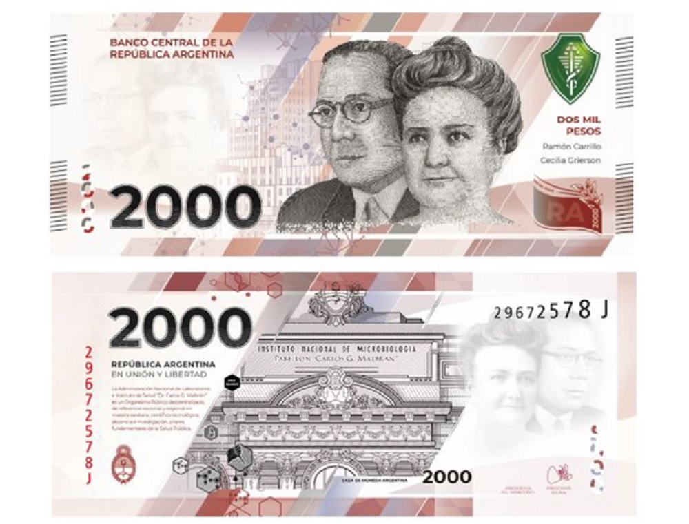 El nuevo billete, que fue discutido y aprobado en la reunión de directorio de la entidad monetaria, conmemora el desarrollo de la ciencia y de la medicina en la Argentina. Llevará como imágenes homenajes a Cecilia Grierson, considerada la primera médica argentina, al ex ministro de Salud y referente del sanitarismo argentino Ramón Carrillo y otra variante con una imagen del Instituto Malbrán.