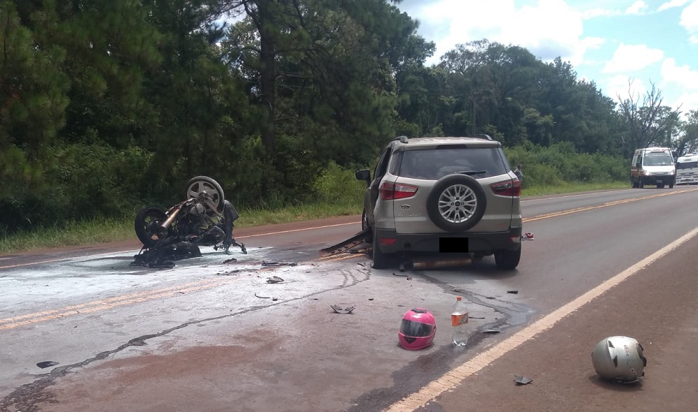 Ambos circulaban por la ruta nacional 12 a bordo de una motocicleta CB de 250cc cuando, alrededor de las 11:40 y a la altura del kilómetro 1.526 -en jurisdicción de Montecarlo, cerca del complejo turístico Itá Porá y en inmediaciones del acceso al Zoo Bal Park-, colisionaron con una Ford Ecosport al mando de un hombre de 35 años.