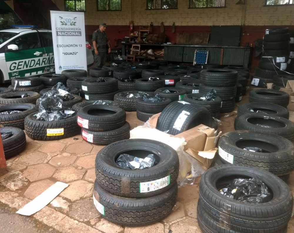 Efectivos de Gendarmería Nacional interceptaron un camión perteneciente a una empresa de correo que transportaba poco más de cien cubiertas ingresadas a la provincia de contrabando, provenientes de Paraguay.