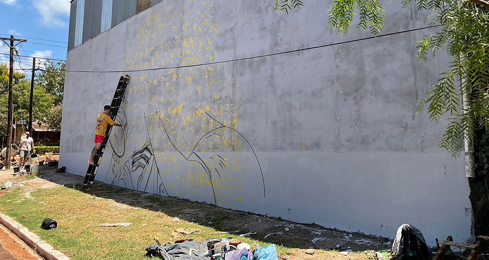 Fue así que contactaron a Antonio Oliveira, un artista misionero oriundo de Puerto Iguazú, que cuenta con una larga trayectoria en realización de murales.