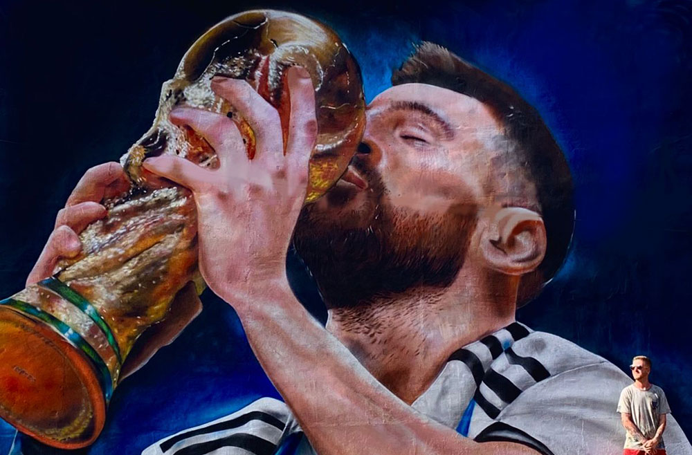 “Por toda la situación que se vive en el país fue una alegría inmensa ganar el mundial. Más allá de la pintura, creo que Messi nos dio una enseñanza muy grande de no bajar los brazos nunca. Ese es el mensaje principal; y por supuesto merece todo tipo de reconocimiento”, reflexionó el artista.