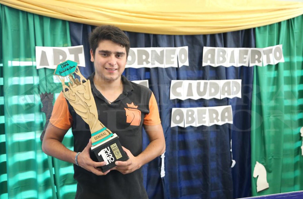 Amato llegó desde Tigre para la competencia con ese mismo objetivo y después de tres jornadas y seis rondas sumó 5,5 puntos, se quedó con la primera posición y levantó la Copa Ciudad de Oberá en la premiación.