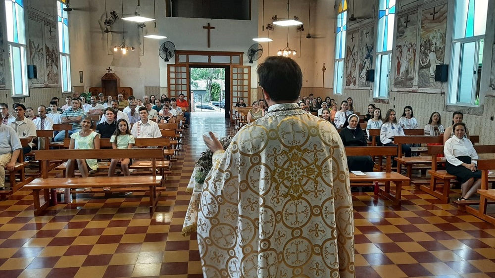 Marcelo Klekailo, párroco de la iglesia “San Pedro y San Pablo” de Leandro N. Alem, donde se desarrollaron las jornadas, agradeció a los jóvenes por el coraje y la valentía que tuvieron al aceptar el desafío de aprender y empaparse en la fe y la cultura de sus antepasados. Aseguró que “Dios no improvisa con nosotros. Si tuvieron la fuerza de poder cortar sus vacaciones, dedicarse a estudiar, pasar estas dos semanas, es porque Él, de alguna manera, les dio la fuerza y la gracia para que puedan hacerlo. Este curso no fue improvisado, sino que estaba en el plan de Dios. Ustedes, con el corazón lleno de alegría lo pueden experimentar como un verdadero regalo del cielo”.