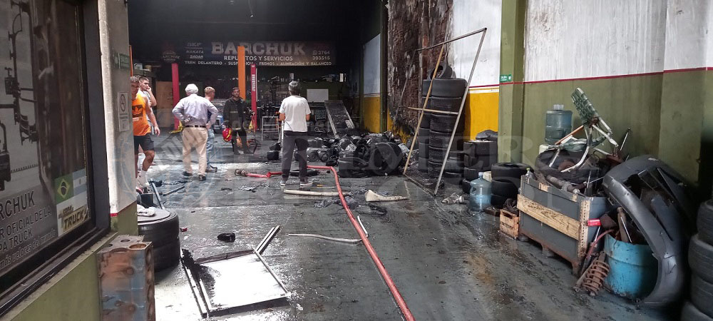 Bomberos de la Policía intervinieron durante la siesta de este martes para controlar y sofocar el incendio que se desató en un taller de repuestos y preparación de vehículos de carrera.
